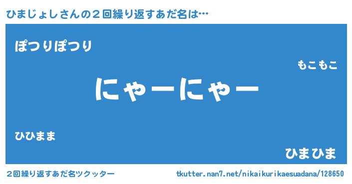 | 男性向けラノベタイトル風あだ名 | 『ひまじょしの嫁は女の子じゃないと思った?』 |
