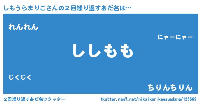 | 欧米人風あだ名 | 『しもうらまりこクリステル』 |
