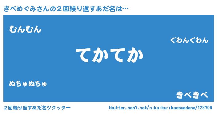 | 意味不明あだ名 | 『自称きべめぐみ』『ペロリンきべめぐみ』 |