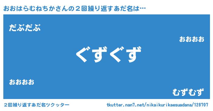 | 男性向けラノベタイトル風あだ名 | 『おおはらむねちかという概念が存在しない退屈な世界 』 |
