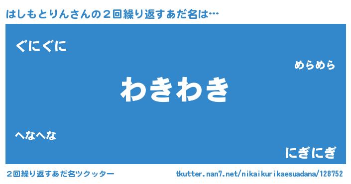 | 男性向けラノベタイトル風あだ名 | 『転生したらはしもとりんだった件』 |