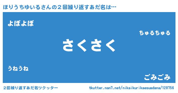 | ヘコむあだ名 | 『ほりうちゆいる(笑)』『ほりっ子』 |