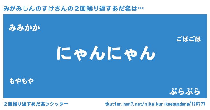 | 男性向けラノベタイトル風あだ名 | 『みかみしんのすけの嫁は女の子じゃないと思った?』 |