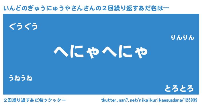 | 女子向けラノベタイトル風あだ名 | 『いんどのぎゅうにゅうやさん恋絵巻』 |