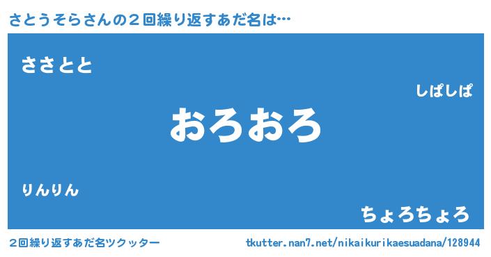 | 女子向けラノベタイトル風あだ名 | 『さとうそらの卵を拾いまして』 |