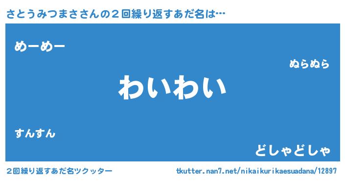 | 男性向けラノベタイトル風あだ名 | 『転生したらさとうみつまさだった件』 |