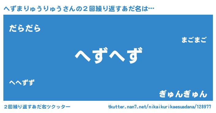 | ヒーロー風カッコイイあだ名 | 『スーパーヘズマリュウリュウ』 |
