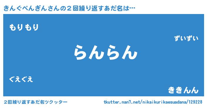 | 料理風あだ名 | 『きんぐぺんぎんごはん』 |