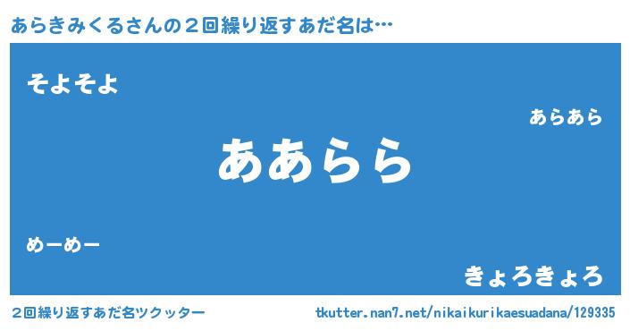 | 意味不明あだ名 | 『あらきみくるフォーエバー』 |