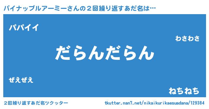 | 意味不明あだ名 | 『パイナップルアーミーフォーエバー』 |