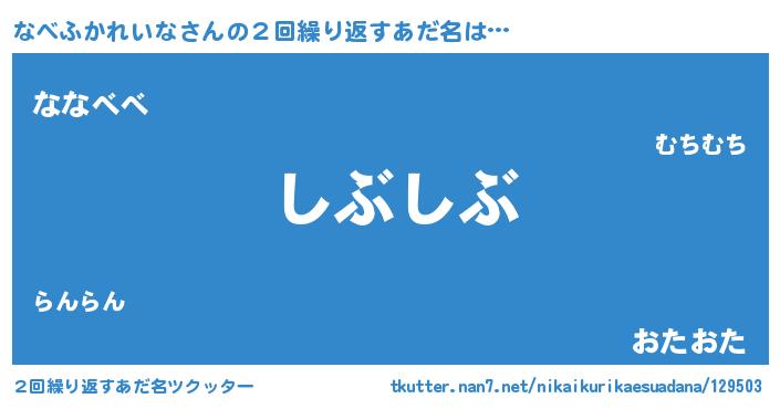 | 料理風あだ名 | 『なべふかれいなのカルパッチョ風』 |