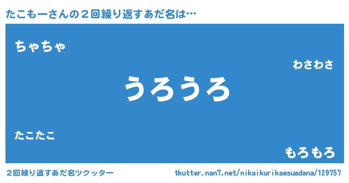 | 欧米人風あだ名 | 『ウサインたこもー』『マイケルたこもー』 |