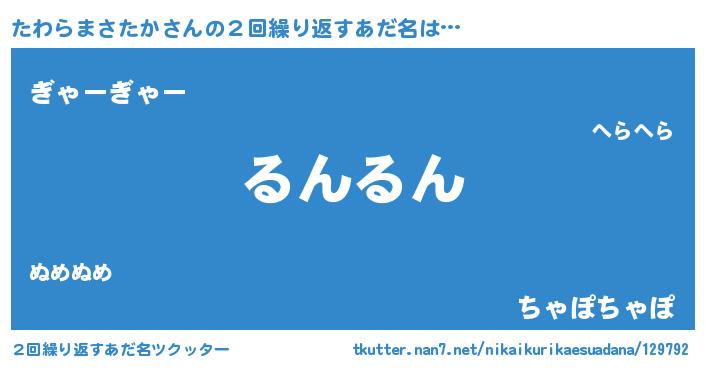 | 可愛いあだ名 | 『たわぷりん』『たわらまさたかママ』 |