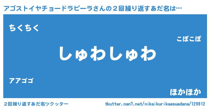 | 欧米人風あだ名 | 『ダレノガレアゴストイヤチョードラピーラ』 |