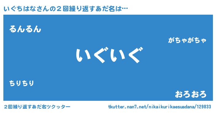 | ヘコむあだ名 | 『いぐふぇ~』『いぐぷりん』 |