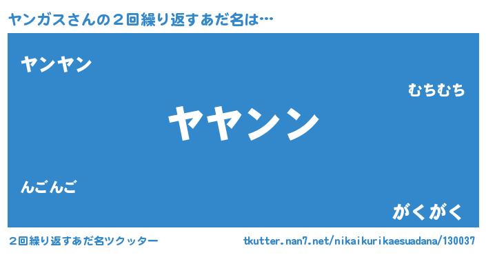 | 欧米人風あだ名 | 『ヤンガスクリステル』 |