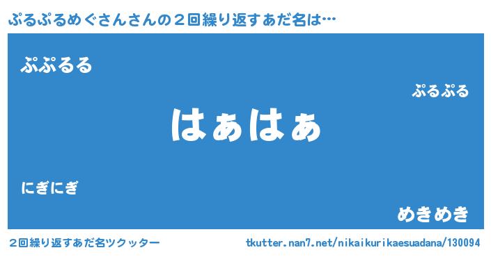 | 欧米人風あだ名 | 『ダニエルぷるぷるめぐさん』 |