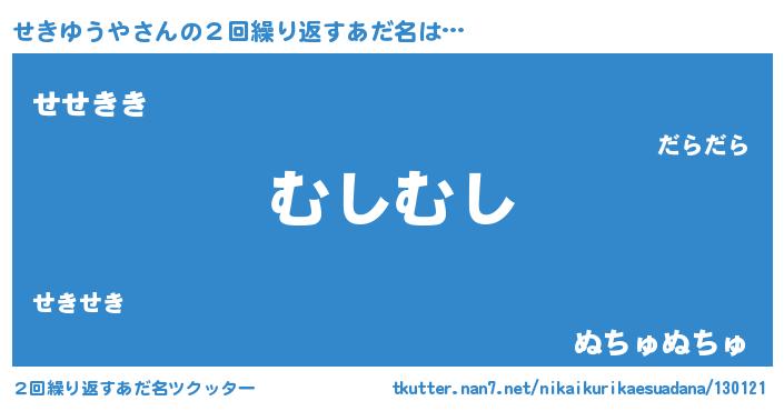 | 意味不明あだ名 | 『自称せきゆうや』『ペロリンせきゆうや』 |