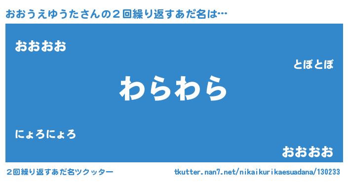 | 意味不明あだ名 | 『ニラ科おおうえゆうた属』 |