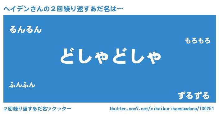 | 意味不明あだ名 | 『ニラ科ヘイデン属』『自称ヘイデン』 |