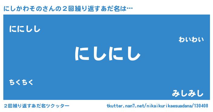 | ポケモン風あだ名 | 『ニシチュウ』『ニシカダネ』 |
