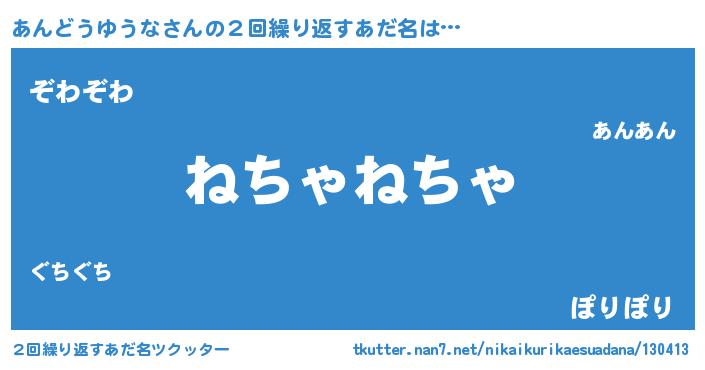 | 欧米人風あだ名 | 『ウサインあんどうゆうな』 |