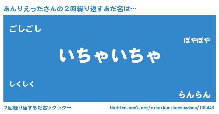 | 欧米人風あだ名 | 『ウサインあんりえった』 |
