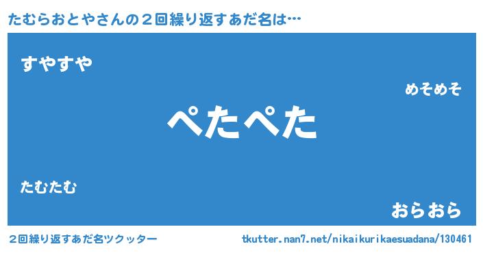 | ピコ太郎風あだ名 | 『タタ太郎』『タム史郎』『タコ三郎』 |