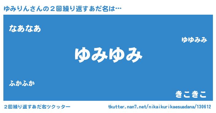 | 意味不明あだ名 | 『ペロリンゆみりん』『永久保存ゆみりん』 |