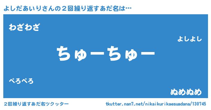 | 欧米人風あだ名 | 『よしだあいり・ステッグマイヤー』 |