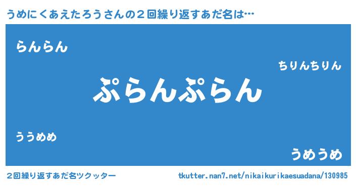 | 欧米人風あだ名 | 『ダニエルうめにくあえたろう』 |