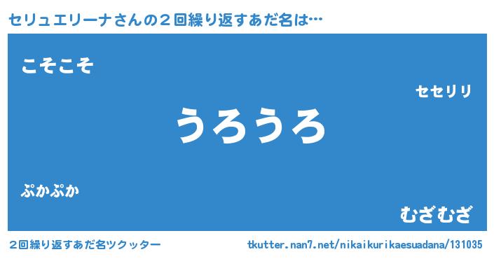 | ポケモン風あだ名 | 『ヒセリュエリーナ』『ゼニセリ』 |