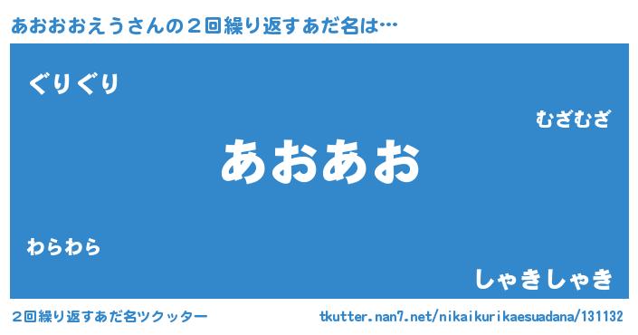 | ヒーロー風カッコイイあだ名 | 『スーパーアオオオエウ』『仮面アオダー』 |
