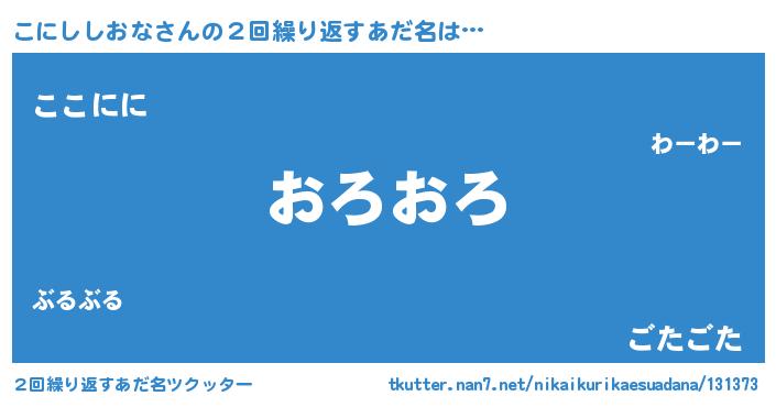 | 意味不明あだ名 | 『とにかく怪しいこにししおな』 |