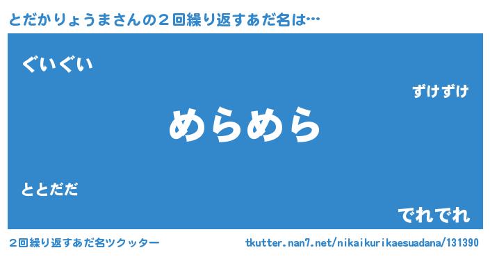 | 意味不明あだ名 | 『自称とだかりょうま』 |