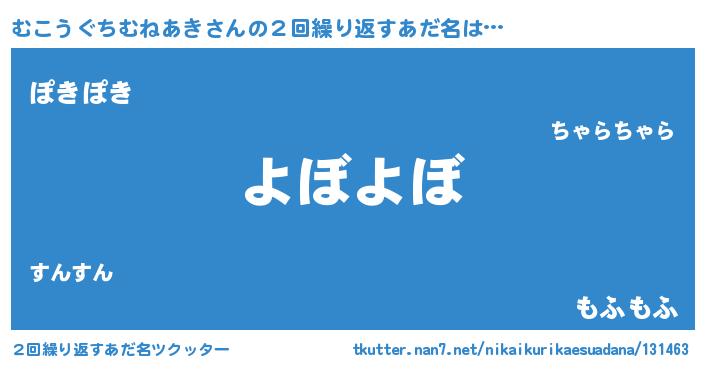 | 欧米人風あだ名 | 『トリンドルむこうぐちむねあき』 |