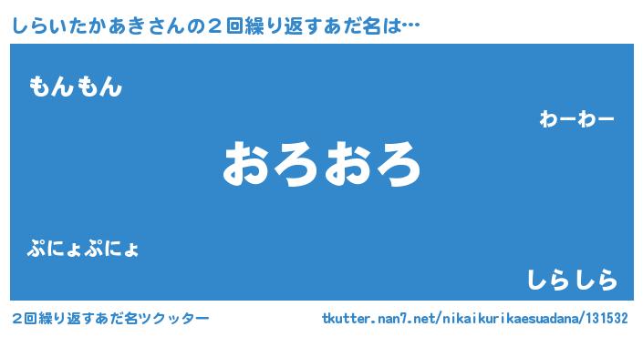 | 欧米人風あだ名 | 『ウサインしらいたかあき』 |
