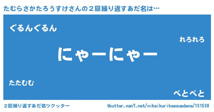 | 男性向けラノベタイトル風あだ名 | 『たむらさかたろうすけの嫁は女の子じゃないと思った?』 |