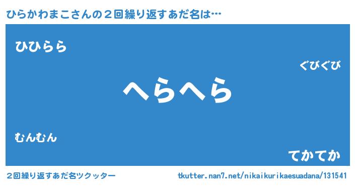 | 男性向けラノベタイトル風あだ名 | 『ノーゲーム・ノーヒラカワマコ』 |