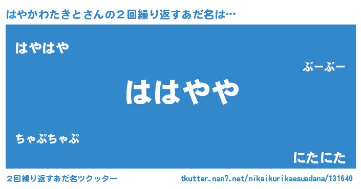 | 男性向けラノベタイトル風あだ名 | 『はやかわたきとに滅ぼされるだけの簡単なお仕事です』 |