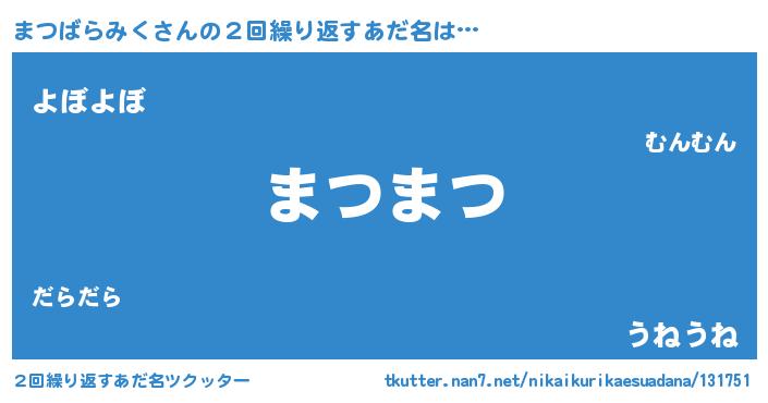 | 恥ずかしいあだ名 | 『プリティーまつばらみく』『まつちん』 |