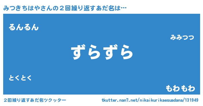 | 意味不明あだ名 | 『住所不定無職みつきちはや(91歳)』 |