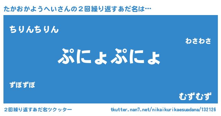 | 意味不明あだ名 | 『眠気覚ましガムたかおかようへい味』 |