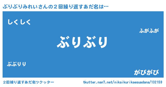 | 欧米人風あだ名 | 『マイケルぶりぶりみれい』 |