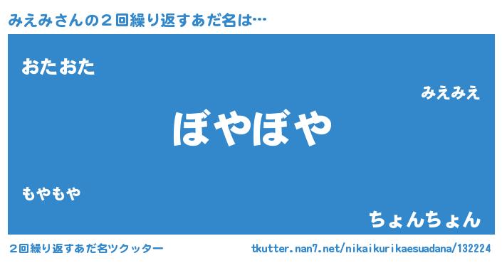 | 欧米人風あだ名 | 『ダニエルみえみ』『ウサインみえみ』 |