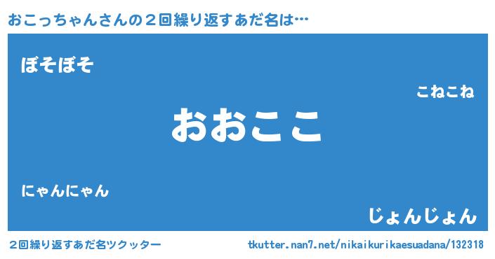 | 男性向けラノベタイトル風あだ名 | 『やはりおこっちゃんの青春ラブコメはまちがっている 』 |