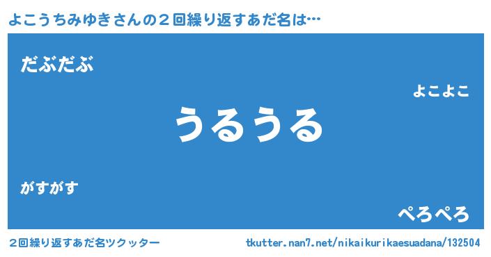 | 欧米人風あだ名 | 『ウサインよこうちみゆき』 |