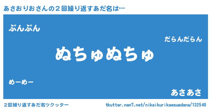 | 男性向けラノベタイトル風あだ名 | 『あさおりおに滅ぼされるだけの簡単なお仕事です』 |