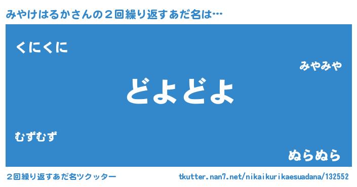 | ヘコむあだ名 | 『みやけはるか(笑)』『みやお』 |