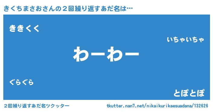 | 男性向けラノベタイトル風あだ名 | 『転生したらきくちまさおだった件』 |